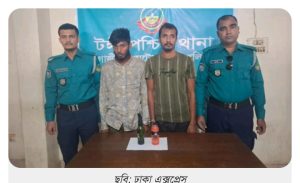 গাজীপুর মহানগরের টঙ্গী পশ্চিম থানার পুলিশ বিশেষ অভিযানে পেট্রোল বোমাসহ দুই যুবককে আটক করেছে। শুক্রবার (১৫ নভেম্বর) রাত ৩টার দিকে উত্তরা-গাজীপুর মহাসড়কের টঙ্গী ব্রিজ এলাকায় টহলরত পুলিশ তাদের সন্দেহজনক চলাফেরা দেখে থামানোর চেষ্টা করলে তারা পালাতে উদ্যত হয়। পরে ধাওয়া করে দুজনকে আটক করা হয়। তাদের কাছ থেকে একটি পেট্রোল বোমা উদ্ধার করা হয়।